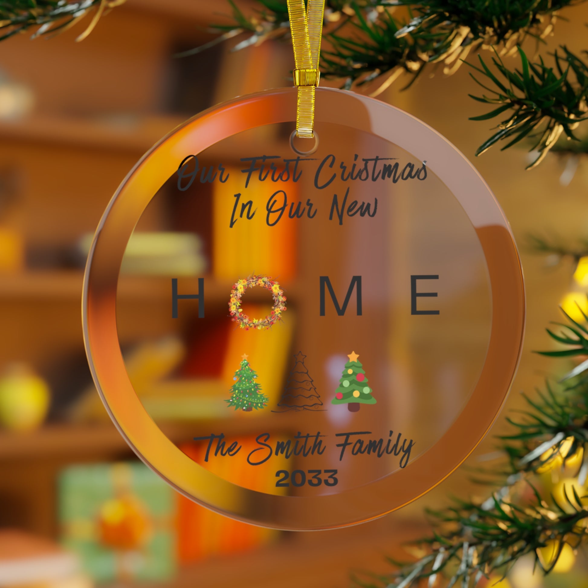 Add a personalized touch to your home with this customizable glass ornament. It comes with a gold-colored ribbon so you can hang it anywhere around the home. It will look as much in place on a wall or by a window as it will in a Christmas tree.